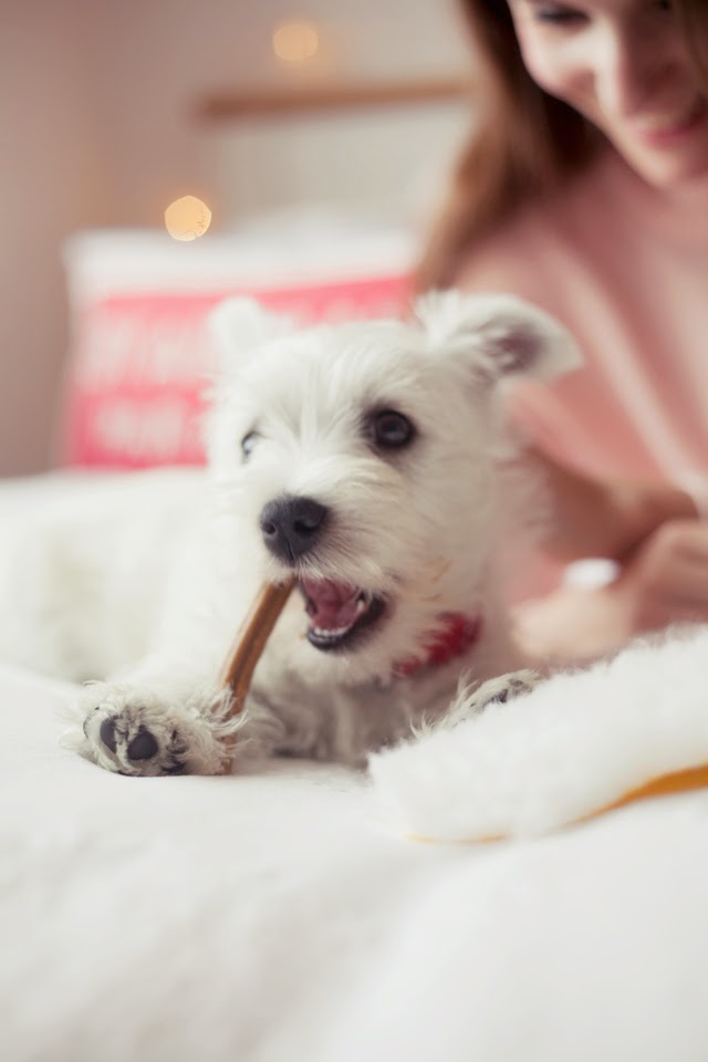 When Olivia told me they’d be a welcoming this adorable bundle of fluff into the family. I could hardly control my excitement! Westies are a firm favourite in the Smith household with the likes of our Tinkerbell and the ever puppylike Beau still around. It’s been quite some time since I’ve had a little puppy around the house. An if you’re a dog lover you’ll know exactly what I mean when I say ‘puppy smell’ I just want to bottle it up.