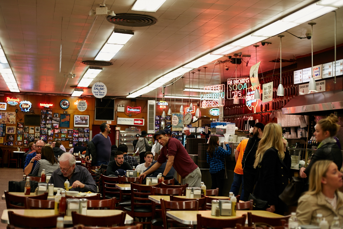 Katz’s Delicatessen is famed for their incredible corned beef and pastrami. You may be more familiar however with Katz’s as that restaurant from ‘When Harry met Sally’. Either way it was on our list to visit, plus the epic review ‘Man v Food’ had given it, which had Ollie weak at the knees over the sandwiches. I love the unique way that Katz’s operates, a ticketed system which acts as your receipt and you pay at the door upon leaving. I had a grilled cheese sandwich (as it was national grilled cheese day on the day we visited, so it seemed rude not to have one). Ollie had a beef brisket sandwich which was honestly as big as his head! I mean look at the photo below, I’m not lying! It was HUGE!!! The meat melted in your mouth, I’m definitely having one of those next time we go.