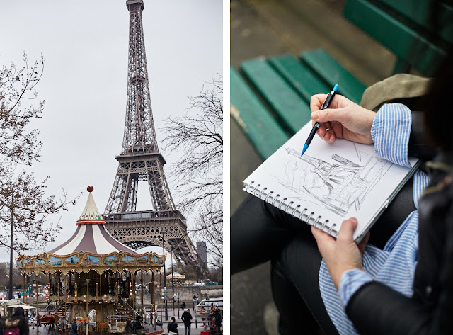 We walked along the Seine towards the Eiffel Tower to take some photos while Ella sketched. It’s so amazing to see her sketches come to life on the page in a matter of seconds right in front of you. She is such a talented lady, if you’re not familiar with Ella’s work already, go and check out her website.